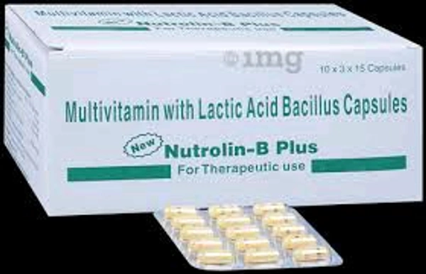 Nutrolin B Plus (New) Capsule contains lactobacillus, niacinamide, pyridoxine and folic acid. New Nutrolin plus capsule is a preparation that normalises gut organisms/flora. The excessive use of certain antibiotics may cause several side effects, one of the most common being diarrhoea. New Nutrolin B plus capsules help manage diarrhoea caused by antibiotics.