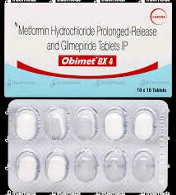 Obimet GX 4 Tablet PR is a combination of two medicines: glimepiride and metformin. This medicine is used in the treatment of type 2 diabetes mellitus (DM). It improves blood glucose levels in adults when taken along with a proper diet and regular exercise.