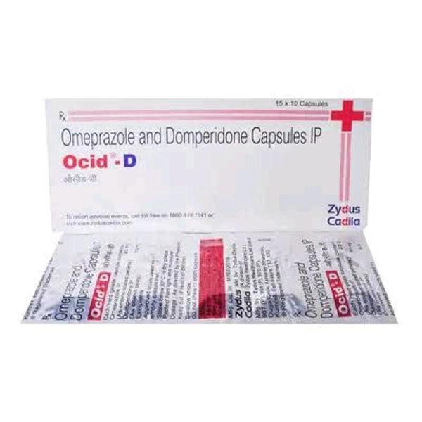 Ocid-D Capsule is a prescription medicine used to treat gastroesophageal reflux disease (Acid reflux) by relieving the symptoms such as heartburn, stomach pain, or irritation. It also neutralizes the acid in the stomach and promotes easy passage of gas to reduce stomach discomfort.