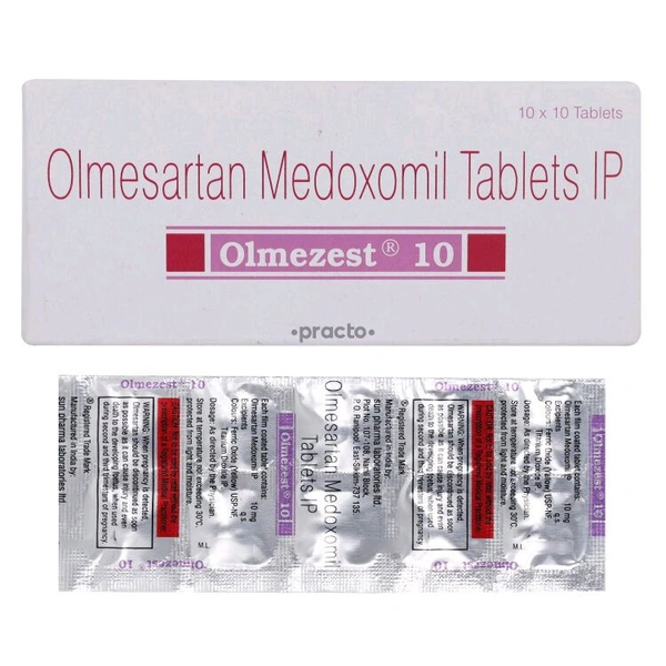 Olmezest 10 Tablet is a medicine used in the treatment of hypertension (high blood pressure). Lowering blood pressure helps to prevent future heart attacks and stroke. This medicine is also effective in preserving kidney function in patients with diabetes.