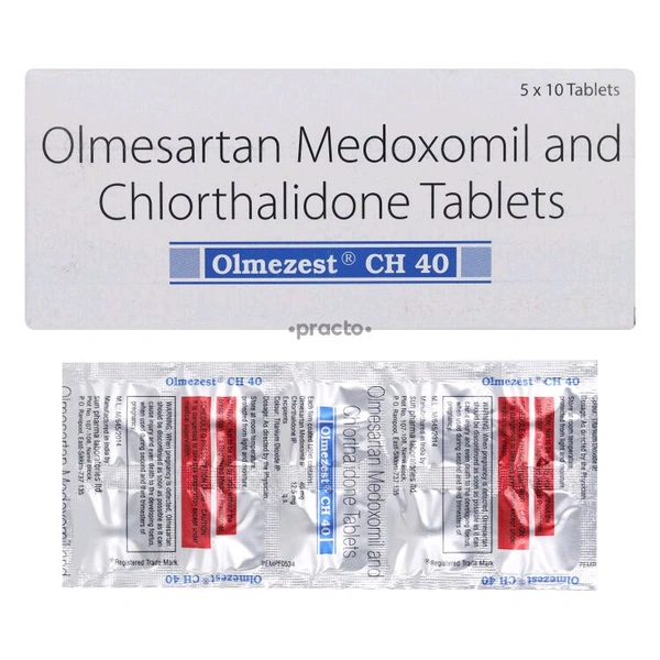Olmezest CH 40 Tablet is used to treat hypertension, where Olmesartan medoxomil works by relaxing the blood vessels. On the other hand, Chlorthalidone being diuretic works by increasing the amount of urine that is passed out from the kidneys and hence lowering the blood pressure.