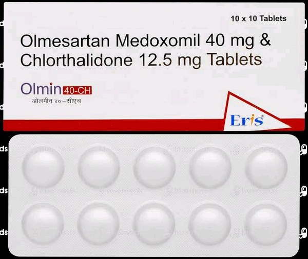 Olmin 40-CH Tablet is used to treat hypertension, where Olmesartan medoxomil works by relaxing the blood vessels. Chlorthalidone being diuretic works by increasing the amount of urine that is passed out from the kidneys and hence lowering the blood pressure.