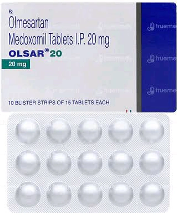 Olsar 20 Tablet is a medicine used in the treatment of hypertension (high blood pressure). Lowering blood pressure helps prevent future heart attacks and strokes. This medicine is also effective in preserving kidney function in patients with diabetes.