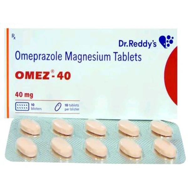 Omez-40 Tablet is used to treat gastroesophageal reflux disease (GERD), peptic ulcer (stomach or duodenal ulcer), and Zollinger-Ellison syndrome (overproduction of acid due to a pancreatic tumor). It contains Omeprazole, which helps reduce stomach acid and relieves symptoms of food pipe lining inflammation (esophagitis), acid reflux, or heartburn. It may cause common side effects such as stomach pain, gas formation (flatulence), nausea, vomiting, diarrhea, and headache. Before taking this medicine, you should tell your doctor if you are allergic to any of its components or if you are pregnant/breastfeeding, and about all the medications you are taking and any pre-existing medical conditions.