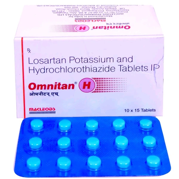 Omnitan H Tablet is used to treat hypertension (high blood pressure) and reduce the risk of stroke in patients with high blood pressure. It is a combination medication generally used when a single medicine is unable to control high blood pressure. It contains Losartan and Hydrochlorothiazide, which helps to relax and widen the blood vessels (arteries) for easy blood flow to the whole body. Also, it prevents excess salt absorption in the body, preventing fluid retention. Thus, it lowers blood pressure and prevents the risk of stroke, heart attack, and oedema (fluid overload). In some cases, it may cause side effects such as upper respiratory infections, dizziness, feeling tired, nausea, diarrhoea, back pain, and cold/flu symptoms like a cough.