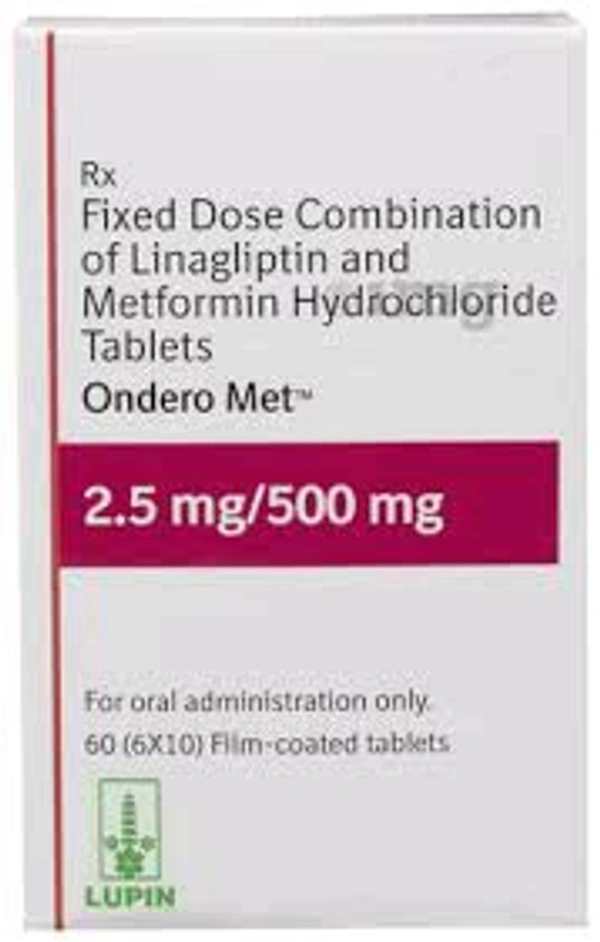 Ondero Met 2.5mg/500mg Tablet is a combination of two medicines that control high blood sugar levels in people with type 2 diabetes mellitus. This helps prevent serious complications of diabetes such as kidney damage and blindness and may reduce your chance of having a heart attack or stroke.