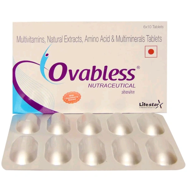 Ovabless Tablet is a nutraceutical product that helps in promoting female fertility and maintains hormonal balance and ovulation. It is enriched with chaste berry extract that treats several menstrual problems. It contains L-Arginine, Green tea extract, Inositol, Vitamin C, Vitamin B forms, Vitamin E, Folic acid, Magnesium, amino acids, and minerals. Loaded with antioxidants, this supplement is also used to prevent cell damage from free radicals. It reduces insulin resistance that affects ovulation and fertilization.