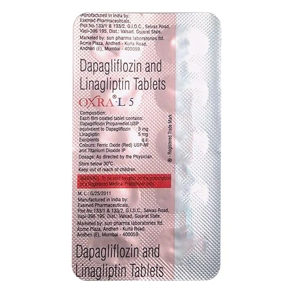 Oxra-L 5 Tablet is a combination of two medicines used to control blood sugar levels in patients with type 2 diabetes mellitus. This medicine when used in combination with proper diet and exercise improves blood sugar level and helps prevent serious complications of diabetes