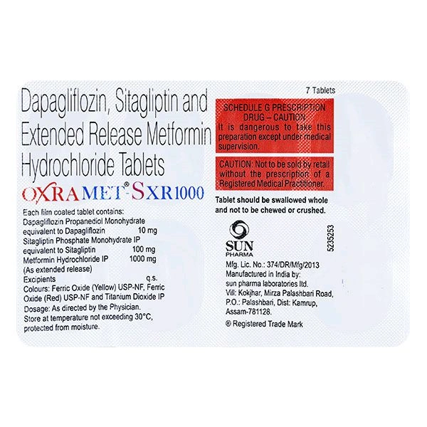 Oxramet-S XR 1000 Tablet is a combination medicine that helps control blood sugar levels. This medicine is used together with diet and exercise to improve blood sugar control in adults with type 2 diabetes mellitus. It helps in proper utilization of insulin, thereby lowering the blood sugar level.