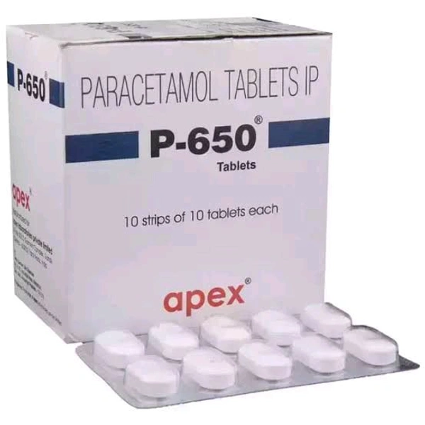 P 650 Tablet is used to reduce fever and treat mild to moderate pain. Also, it is used to relieve headaches, migraines, toothaches, period pain, back pain, muscle pain, and rheumatic pains. It contains Paracetamol, which works by inhibiting the production of certain chemical messengers in the brain known as prostaglandins. Thus, reduces pain. Also, it affects an area of the brain that regulates body temperature, known as the hypothalamic heat-regulating centre. Thereby, it reduces fever. In some cases, it may cause side effects such as nausea, stomach pain and dark-coloured urine.