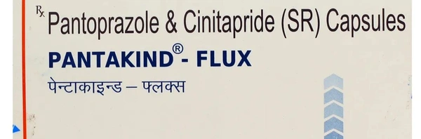 Pantakind Flux Capsule is used to treat gastro-oesophageal reflux disease (GERD), indigestion, duodenal ulcers, erosive oesophagitis (acid-related damage to the lining of the oesophagus), infections caused by Helicobacter pylori when given along with an antibiotic, and Zollinger-Ellison syndrome. It contains Pantoprazole and Cinitapride, which stop acid production and prevent the back-flow of food and acid from the stomach into the mouth. Thus, it helps in preventing acid reflux, thereby providing relief from acidity and heartburn. In some cases, you may experience certain common side effects such as headache, flatulence, stomach pain, constipation, and diarrhoea. Before taking this medicine, you should tell your doctor if you are allergic to any of its components or if you are pregnant/breastfeeding, and about all the medications you are taking and pre-existing medical conditions.