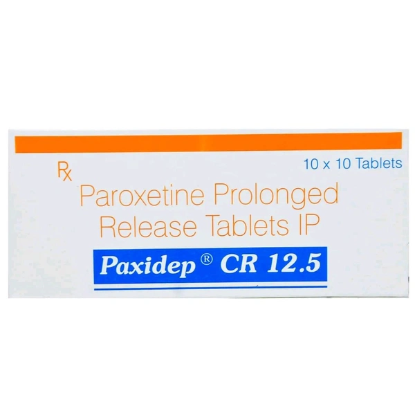 Paxidep CR 12.5 Tablet is used to treat major depressive disorder, obsessive-compulsive disorder (OCD), panic disorder, social anxiety disorder, post-traumatic stress disorder, premenstrual dysphoric disorder, and generalised anxiety disorder. It contains Paroxetine which works by increasing serotonin concentration, thereby regulating mood. This medicine may sometimes cause side effects such as insomnia, dizziness, headache, diarrhoea, nausea, fatigue, dry mouth, and loss of appetite. Inform the doctor if you are pregnant or breastfeeding, taking any other medication, or have any pre-existing medical conditions.