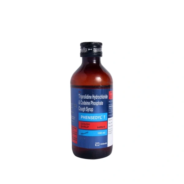 Phensedyl T Syrup is used to treat dry cough. It contains Codeine and Triprolidine which work by blocking the receptor in the brain that produces cough and the action of histamine that causes allergic reactions. In some cases, this medicine may cause side effects such as drowsiness, dry mouth, vomiting, blurred vision, constipation, dizziness, or tiredness. Inform the doctor if you are pregnant or breastfeeding, taking any other medication, or have any pre-existing medical conditions.