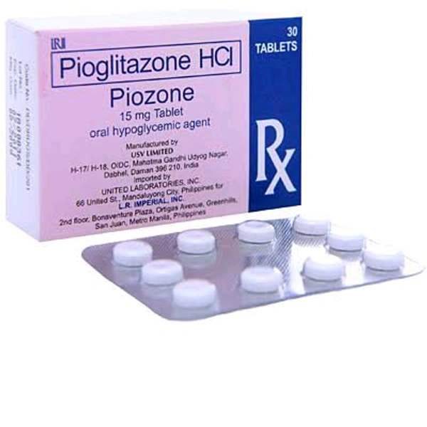 PIOZONE 15MG TABLET is used to treat type 2 (non-insulin-dependent) diabetes mellitus. It contains Pioglitazone, which helps control the sugar level in your blood when you have type 2 diabetes by helping your body make better use of the insulin it produces. It may cause common side effects such as upper respiratory tract infection, headache, sinusitis, myalgia (muscle pain), and pharyngitis. Before taking this medicine, you should tell your doctor if you are allergic to any of its components or if you are pregnant/breastfeeding, and about all the medications you are taking and pre-existing medical conditions.