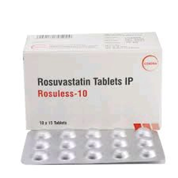 Rosuless 10 Tablet belongs to a group of medicines called statins. It is used to lower cholesterol and triglyceride levels and reduce the risk of heart disease. Cholesterol is a fatty substance that builds up in your blood vessels and causes narrowing, which may lead to a heart attack or stroke.