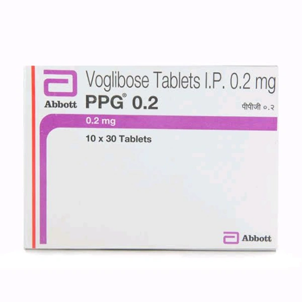 PPG 0.2 Tablet is used to treat type-2 diabetes mellitus when diet and exercise alone cannot control blood sugar levels. It contains Voglibose, which works by inhibiting the intestinal enzymes responsible for breaking complex sugars into simple sugars like glucose. Thereby, it helps in preventing blood glucose levels from rising immediately after meals. In some cases, it may cause common side effects such as abdominal pain, diarrhoea, flatulence (gas), skin reactions, heartburn, nausea, and vomiting. Before taking this medicine, you should tell your doctor if you are allergic to any of its components or if you are pregnant/breastfeeding, and about all the medications you are taking and pre-existing medical conditions