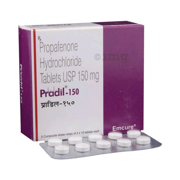 Pradil 150 Tablet is a medicine used to treat arrhythmia (abnormal heart rhythm). It restores normal heart rhythm by blocking abnormal electrical signals in the heart. This helps to maintain a regular and steady heartbeat.