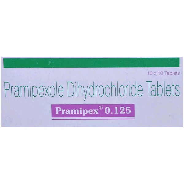 Pramipex 0.125 Tablet is used to treat the symptoms of Parkinson's disease and moderate to severe Willis-Ekbom disease (restless legs syndrome) in adults. It contains Pramipexole, which works by mimicking the action of dopamine (acting in place of dopamine), a natural substance found in the brain needed to control body movement. This triggers the nerve impulses in the brain that control body movements. In some cases, you may experience certain common side effects such as sleepiness, nausea, constipation, dizziness, fatigue, hallucinations, dry mouth, muscle spasms, and peripheral oedema (leg swelling due to fluid overload). Before taking this medicine, you should tell your doctor if you are allergic to any of its components or if you are pregnant/breastfeeding, and about all the medications you are taking and pre-existing medical conditions.