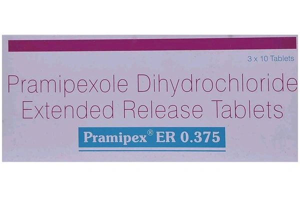 Pramipex ER 0.375 Tablet is used to treat the symptoms of Parkinson's disease and moderate to severe Willis-Ekbom disease (restless legs syndrome) in adults. It contains Pramipexole, which works by mimicking the action of dopamine (acting in place of dopamine), a natural substance found in the brain needed to control body movement. This triggers the nerve impulses in the brain that control body movements. In some cases, you may experience certain common side effects such as sleepiness, nausea, constipation, dizziness, fatigue, hallucinations, dry mouth, muscle spasms, and peripheral oedema (leg swelling due to fluid overload). Before taking this medicine, you should tell your doctor if you are allergic to any of its components or if you are pregnant/breastfeeding, and about all the medications you are taking and pre-existing medical conditions.