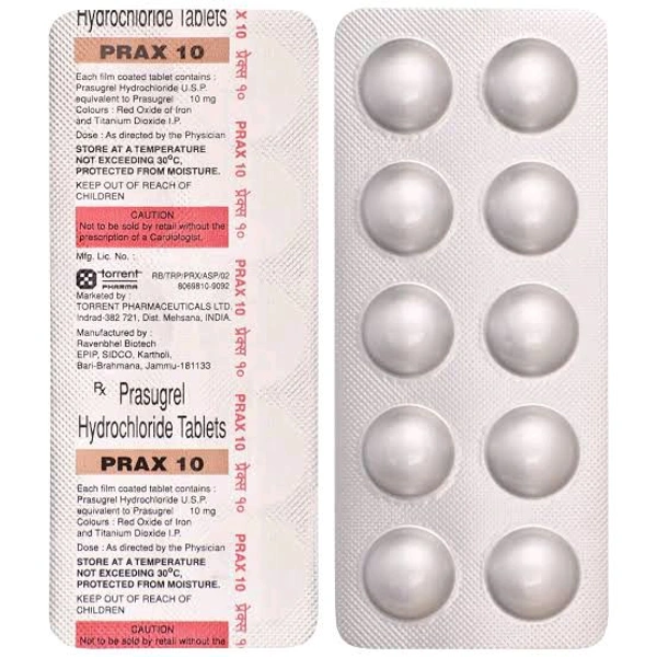 Prax 10 Tablet is used to treat people with a recent heart attack or severe heart-related chest pain (unstable angina), who have undergone stenting of the heart. It helps to prevent serious heart-related problems like having another heart attack, stroke, or formation of blood clots in stents