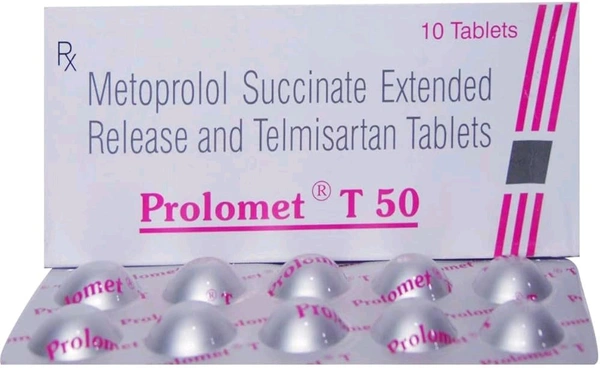 Prolomet T 50 Tablet ER is a medicine used for treating high blood pressure. By lowering blood pressure, it helps in preventing future heart attacks and strokes. Early treatment with this medicine also improves the chances of survival in patients with heart attacks