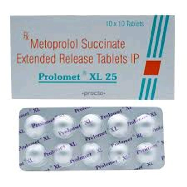 Prolomet XL 25 tablet is used to treat chest pain (angina), high blood pressure and heart failure. It contains metoprolol as its active ingredient. This medicine acts by lowering the raised blood pressure and slowing the heart rate by relaxing the blood vessels.