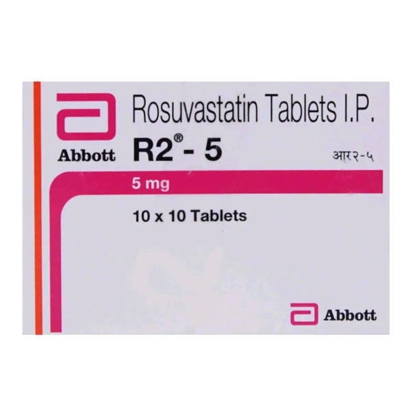 R2 5 Tablet is used in the treatment of high cholesterol and to reduce the risk of stroke and heart attack. It contains Rosuvastatin, which slows down cholesterol production in the body and decreases the amount of cholesterol that may build up on the arteries walls and block blood flow to brain, heart and other body parts. Thus, it lowers cholesterol and fats levels and helps to prevent stroke, heart disease and heart attack. It may cause side effects such as myalgia (muscle pain), asthenia (lack of energy), nausea, headache, abdominal pain, muscle pain, weakness, and daytime drowsiness. Before taking this medicine, you should tell your doctor if you are allergic to any of its components or if you are pregnant/breastfeeding, and about all the medications you are taking and pre-existing medical conditions.