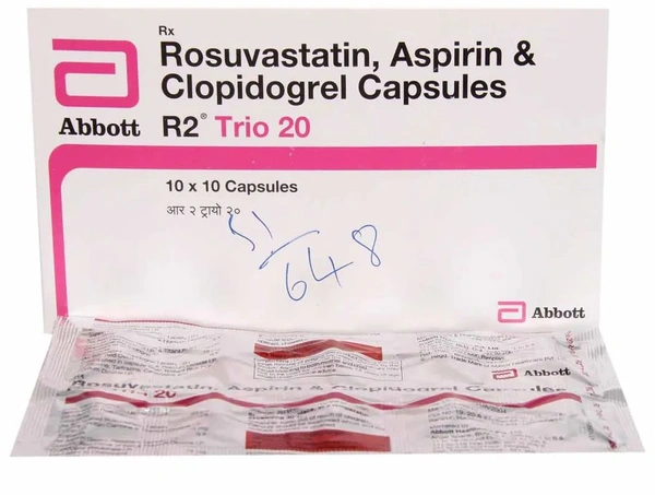 R2 Trio 20mg Capsule is used to treat heart attack, myocardial infarction (blockage of the blood to muscles of the heart), angina (chest pain), and stroke. It lowers the level of lipids and blocks the ability of the body to produce bad cholesterol and improves the ability of the body to make good cholesterol. It works by preventing the blood from sticking together and decreasing the production of clots which is harmful to the body. In some cases, it may cause side effects like headache, muscle pain, increased bleeding, stomach pain, indigestion, bruise (discolouration of the skin), bleeding in the nose, weakness, gastrointestinal bleeding, diarrhea, and nausea. Before taking this medicine, you should tell your doctor if you are allergic to any of its components or if you are pregnant/breastfeeding, and about all the medications you are taking and pre-existing medical conditions.