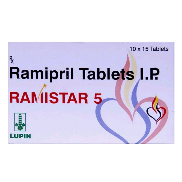 Ramistar 5 Tablet is used to treat high blood pressure (hypertension) and reduce the risk of having a heart attack, stroke or heart failure. It contains Ramipril, which relaxes and widens the blood vessels, making it easier for the heart to pump blood to all parts of the body, thereby lowering the raised blood pressure and reducing the risk of having a heart attack, stroke or heart failure. In some cases, it may cause common side effects like headache, dizziness, fatigue, and cough. Before taking this medicine, you should tell your doctor if you are allergic to any of its components or if you are pregnant/breastfeeding, and about all the medications you are taking and pre-existing medical conditions