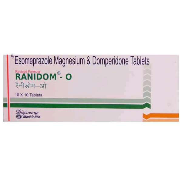 Ranidom-O Tablet is a prescription medicine used to treat gastroesophageal reflux disease (acid reflux). It helps relieve symptoms such as heartburn, stomach pain, or irritation. It also neutralizes the acid in the stomach and promotes easy gas passage to reduce stomach discomfort.