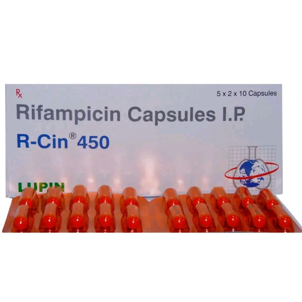 R-Cin 450 Capsule is used in combination with other medicines to treat tuberculosis (TB). It contains Rifampicin, which inhibits the growth of bacteria. In some cases, you may experience certain common side effects, such as drowsiness, dizziness, headache, weakness, muscle pain, heartburn, diarrhea, gas, and numbness or tingling sensation. Before taking this medicine, you should tell your doctor if you are allergic to any of its components or if you are pregnant/breastfeeding, and about all the medications you are taking and pre-existing medical conditions