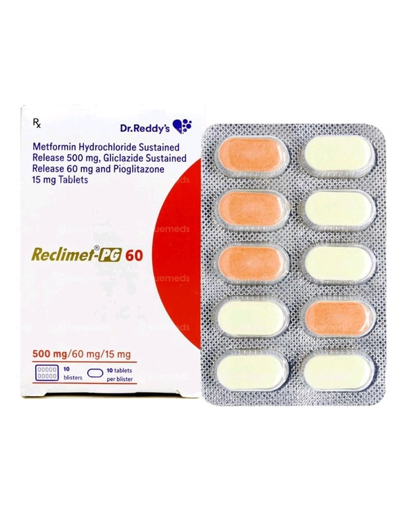 Reclimet PG 60 Tablet SR is an anti-diabetic medicine that is used to treat type 2 diabetes mellitus. It helps control blood sugar levels in adults with diabetes.