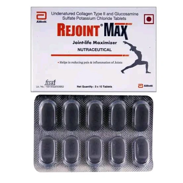 Rejoint Max Tabletis a supplement that can help manage osteoarthritis and rheumatoid arthritis. It contains glucosamine and type-2 collagen that work together to maintain the strength and elasticity of cartilage in movable joints.