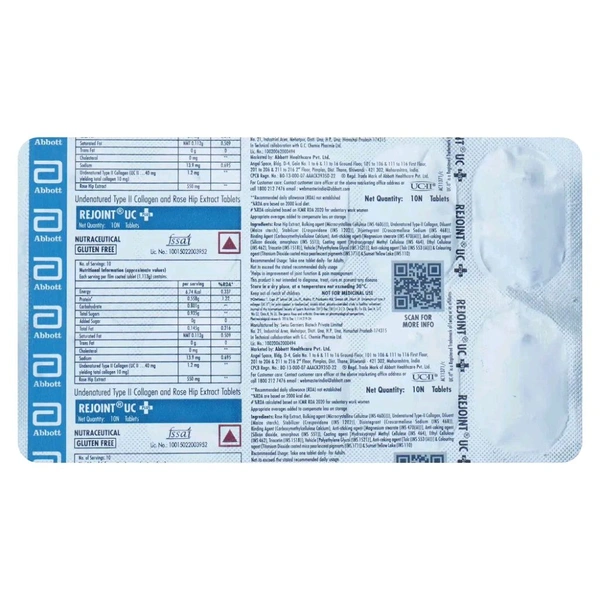 Rejoint UC Plus Tablet is a nutraceutical supplement developed from natural substances. The primary components present in the Rejoint UC Plus Tablet are Rose Hip Extract and undenatured type II collagen. All these active ingredients in Rejoint UC Plus Tablet support joint health and alleviate joint pain, stiffness, and discomfort.