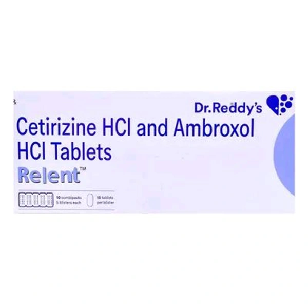 Relent Tablet is used to treat bronchitis, cough, and allergies. It contains Cetirizine and Ambroxol, which block the effects of a chemical messenger known as histamine, which is naturally involved in allergic reactions. Also, it thins and loosens mucus (phlegm), making it easier to cough out. In some cases, you may experience tiredness, sleepiness, dry mouth, etc. Before taking this medicine, you should tell your doctor if you are allergic to any of its components or if you are pregnant/breastfeeding, and about all the medications you are taking and pre-existing medical conditions.