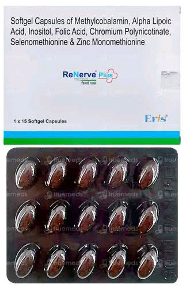 ReneRve PLUS Softgel Capsule is used to treat neuropathic or nerve pain which might be due to diabetes or spinal cord injury. This means it helps in reducing sensations such as burning, throbbing, sharp, numbness, pins and needles pain in arms, hands, fingers, legs, feet, or toes.