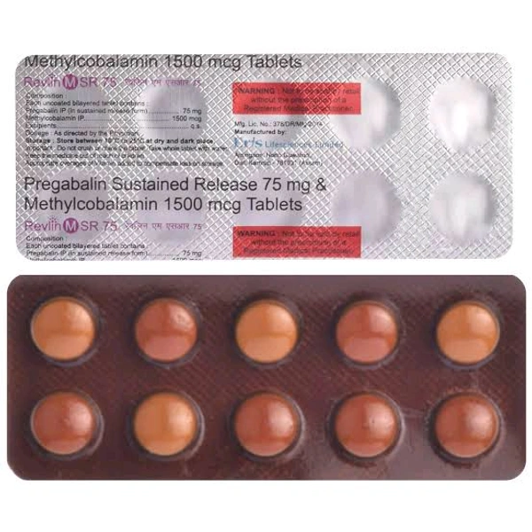 Revlin M SR 75 Tablet belongs to the class of medications 'anticonvulsants' used in the treatment of neuropathic pain. Neuropathic pain is a chronic (long-term) progressive nerve disease that causes nerve pain due to nerve damage or the nervous system's malfunctioning.