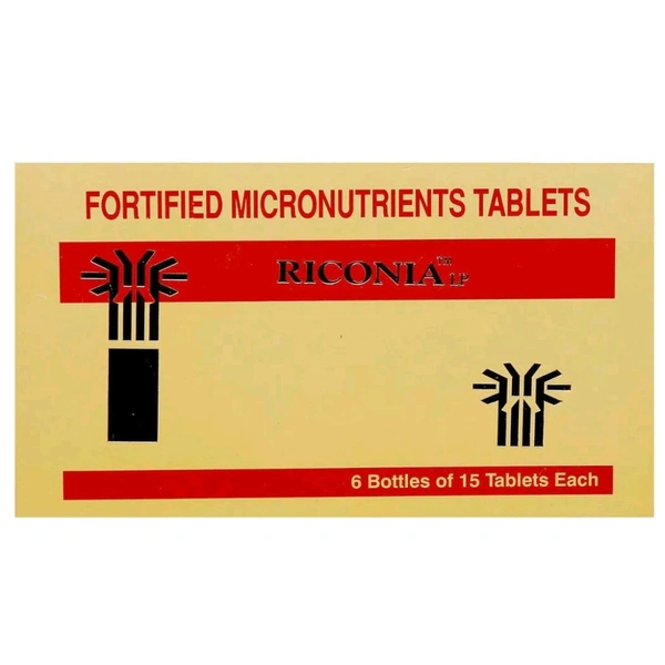 Riconia LP Tablet is a blend of multivitamins and minerals that is essential for your general health and well-being. It is used to treat nutritional deficiencies caused due to inadequate nutrition or certain illnesses. It contains Vitamin A, Thiamine, Vitamin B, Vitamin C, Vitamin D3, Alpha tocopheryl acetate, Calcium pantothenate, Folic acid, Nicotinamide, Biotin, Lycopene, Phytonadione, Zinc, Iodine, Iron, Magnesium, Manganese, Copper, Calcium, Phosphorus, Tin, Potassium chloride as key ingredients. These vitamins and minerals nourish the body by delivering the everyday demands of nutrition. It fights infections by enhancing immune function. It improves physical performance and delays degenerative processes of aging. It helps to overcome weakness, stress, exhaustion, and extreme tiredness