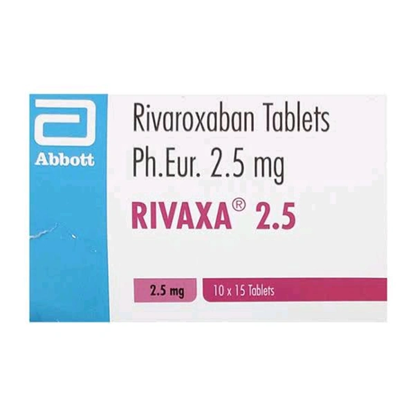 Rivaxa 2.5 Tablet is used to prevent and treat deep vein thrombosis (blood clots in leg veins) and pulmonary embolism (blood clots in the lung) by reducing blood clot formation. It contains Rivaroxaban, which works by inhibiting the production of clotting factors by decreasing the action of vitamin K. This prevents the conversion of fibrinogen (soluble protein) to fibrin (insoluble protein), thereby preventing blood clots formation. You may experience bleeding, anemia (low number of red blood cells), and nausea. Before taking this medicine, you should tell your doctor if you are allergic to any of its components or if you are pregnant/breastfeeding, and about all the medications you are taking and pre-existing medical conditions.