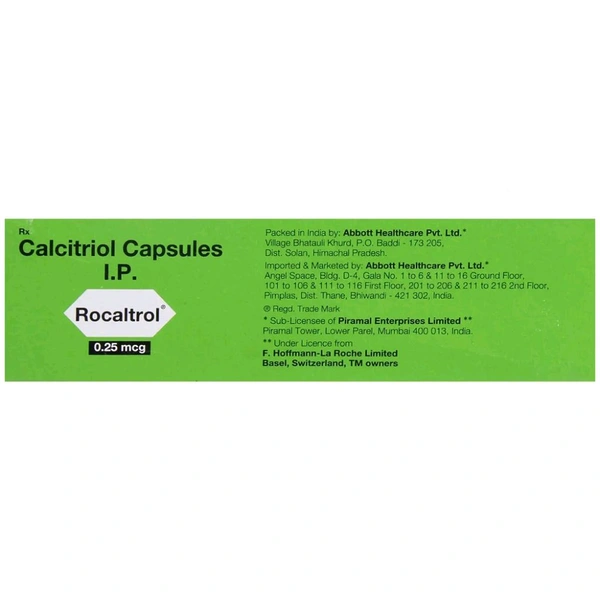 Rocaltrol Capsule is used to treat low blood calcium levels. It contains Calcitriol, which raises Vitamin D levels and thereby increases calcium levels in the blood. In some cases, this medicine may cause side effects such as stomach upset, nausea, vomiting, loss of appetite, mood changes, weakness, tiredness, and headache. Inform the doctor if you are pregnant or breastfeeding, taking any other medication, or have any pre-existing medical conditions.