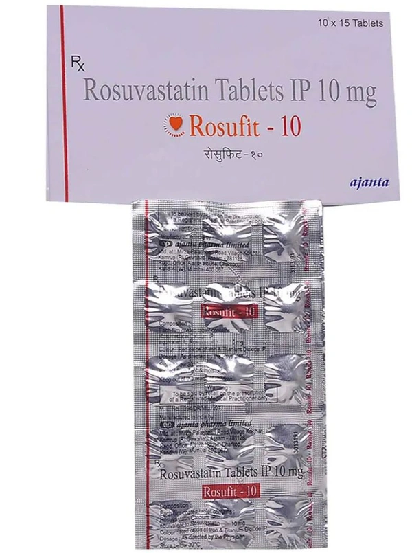 Rosufit 10 Tablet is used in the treatment of high cholesterol and to reduce the risk of stroke and heart attack. It contains Rosuvastatin, which slows down cholesterol production in the body and decreases the amount of cholesterol that may build up on the arteries walls and block blood flow to brain, heart and other body parts. Thus, it lowers cholesterol and fats levels and helps to prevent stroke, heart disease and heart attack. It may cause side effects such as myalgia (muscle pain), asthenia (lack of energy), nausea, headache, abdominal pain, muscle pain, weakness, and daytime drowsiness. Before taking this medicine, you should tell your doctor if you are allergic to any of its components or if you are pregnant/breastfeeding, and about all the medications you are taking and pre-existing medical conditions.
