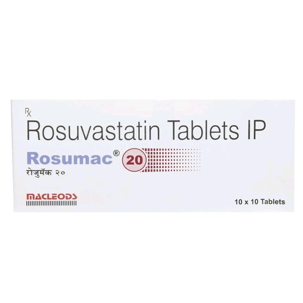 Rosumac 20 Tablet is used in the treatment of high cholesterol and to reduce the risk of stroke and heart attack. It contains Rosuvastatin, which slows down cholesterol production in the body and decreases the amount of cholesterol that may build up on the arteries walls and block blood flow to brain, heart and other body parts. Thus, it lowers cholesterol and fats levels and helps to prevent stroke, heart disease and heart attack. It may cause side effects such as myalgia (muscle pain), asthenia (lack of energy), nausea, headache, abdominal pain, muscle pain, weakness, and daytime drowsiness. Before taking this medicine, you should tell your doctor if you are allergic to any of its components or if you are pregnant/breastfeeding, and about all the medications you are taking and pre-existing medical conditions.