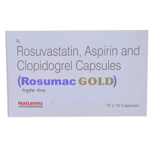 Rosumac gold 10 Capsule is used to treat heart attack, myocardial infarction (blockage of the blood to muscles of the heart), angina (chest pain), and stroke. It lowers the level of lipids and blocks the ability of the body to produce bad cholesterol and improves the ability of the body to make good cholesterol. It works by preventing the blood from sticking together and decreasing the production of clots which is harmful to the body. In some cases, it may cause side effects like headache, muscle pain, increased bleeding, stomach pain, indigestion, bruise (discolouration of the skin), bleeding in the nose, weakness, gastrointestinal bleeding, diarrhea, and nausea. Before taking this medicine, you should tell your doctor if you are allergic to any of its components or if you are pregnant/breastfeeding, and about all the medications you are taking and pre-existing medical conditions.