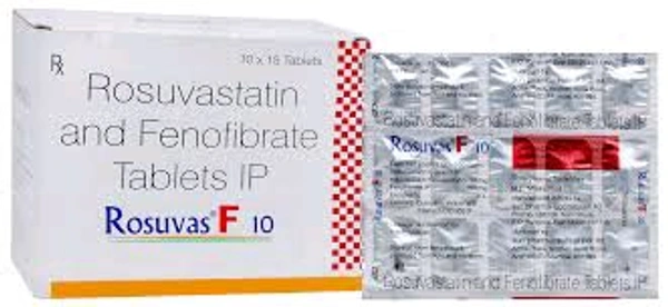 Rosuvas F 10 Tablet is a combination of two lipids (fat) lowering medicines. It is used to lower the levels of lipids known as cholesterol and triglycerides in the blood when lifestyle changes (eg. low-fat diet) on their own have failed. This medicine helps to reduce the risk of heart disease.