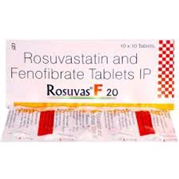 Rosuvas F 20 Tablet is a combination of two lipids (fat) lowering medicines. It is used to lower the levels of lipids known as cholesterol and triglycerides in the blood when lifestyle changes (eg. low-fat diet) on their own have failed. This medicine helps to reduce the risk of heart disease.