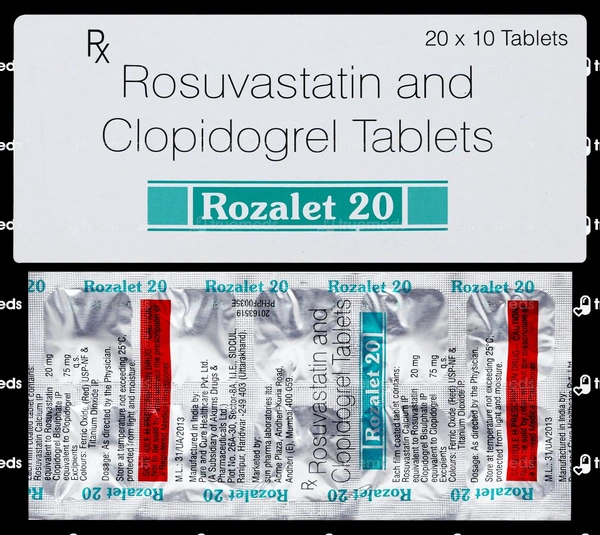 Rozalet 20 Tablet is a combination of two medicines used to prevent heart attack, angina, and stroke. This medicine reduces the "bad" cholesterol (LDL) and triglycerides (fats) levels. Moreover, it also decreases the formation of harmful blood clots.