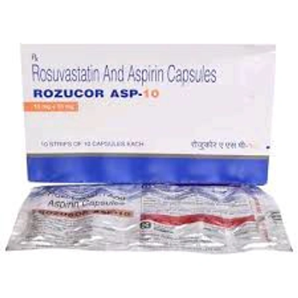 Rozucor ASP-10 Capsule is a combination of blood-thinning agent and cholesterol-lowering agent, primarily used to prevent myocardial infarction (heart attack), stroke or peripheral vascular disease. It is also used to lower abnormally elevated cholesterol or fat levels (hyperlipidaemia or dyslipidaemia) in the body.