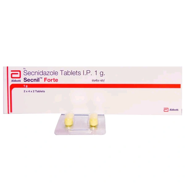 Secnil Forte Tablet is used to treat various infections caused by bacteria and parasites (amoeba). It is prescribed for the treatment of diarrhoea caused by microorganisms Entamoeba histolytica and Giardia lamblia. Additionally, it also treats vaginal and other bacterial infections. It slows down the growth or sometimes kills the harmful bacteria and parasites (amoeba) that cause infections. It may cause side effects such as headache, vomiting, nausea, abdominal pain, diarrhea, vaginal itching, and vaginal yeast infection. Before taking this medicine, you should tell your doctor if you are allergic to any of its components or if you are pregnant/breastfeeding, and about all the medications you are taking and pre-existing medical conditions.