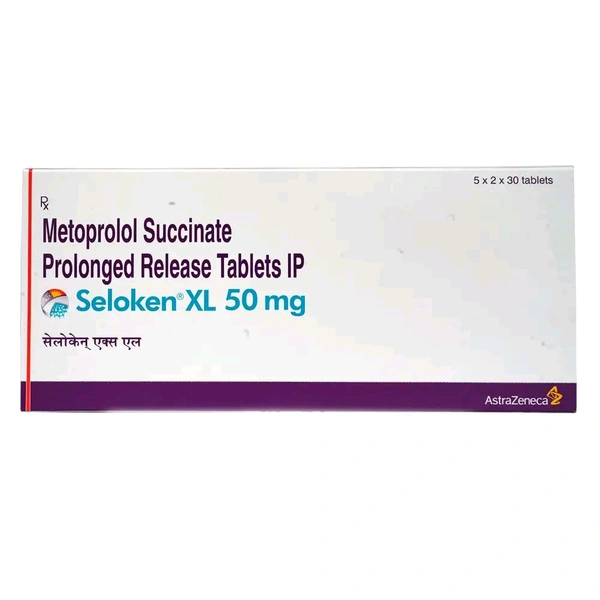 Seloken XL 50 mg Tablet is used to treat high blood pressure (hypertension), heart-related chest pain (angina), irregular heart rhythm (arrhythmia), and to protect the heart after a heart attack (myocardial infarction). Besides this, it may also help in relieving symptoms of migraine-related headache and tremors (fits). It contains Metoprolol, which helps in slowing down the heart rate, making it easier for the heart to pump blood throughout the body. This lowers the blood pressure and helps in reducing the risk of having a stroke, heart attack, or other heart or kidney problems in the future. In some cases, it may cause certain common side effects like dizziness, tiredness, diarrhoea, stomach pain, nausea, and headache. Before taking this medicine, you should tell your doctor if you are allergic to any of its components or if you are pregnant/breastfeeding, and about all the medications you are taking and pre-existing medical conditions