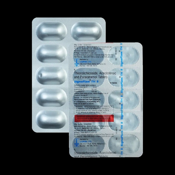 Signoflam-TH 8 Tablet is a combination medicine that helps in relieving muscular pain. It works by blocking the release of certain chemical messengers that cause pain, inflammation, and fever. This improves the movement of muscles and provides relief from pain and discomfort.
